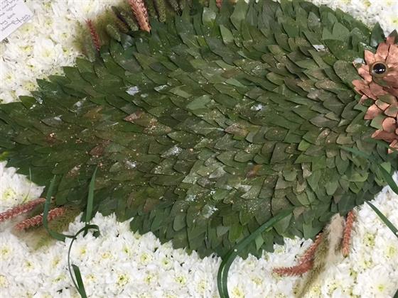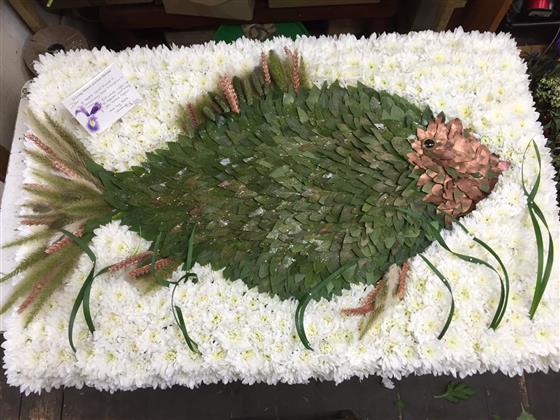 A Fish created from flowers and foliage. For this price the tribute is around 2 foot across.