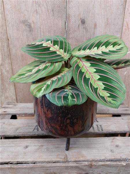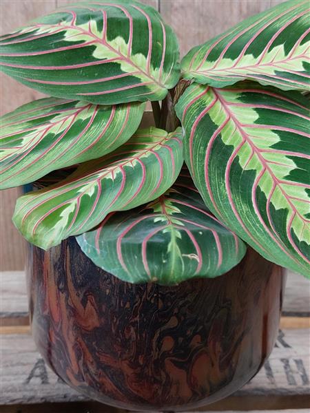 Maranta plants are know as prayer plants as the leaves move closed at night time. They like a warm and bright room but not direct sunshine as the leaves can get scorched. Keep the soil moist but don't leave them sat in water for too long.