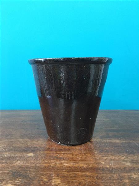 Indoor terracotta pot with a deep brown glaze. Has a disc in the base which can be knocked out for drainage or left in place for a water tight pot.