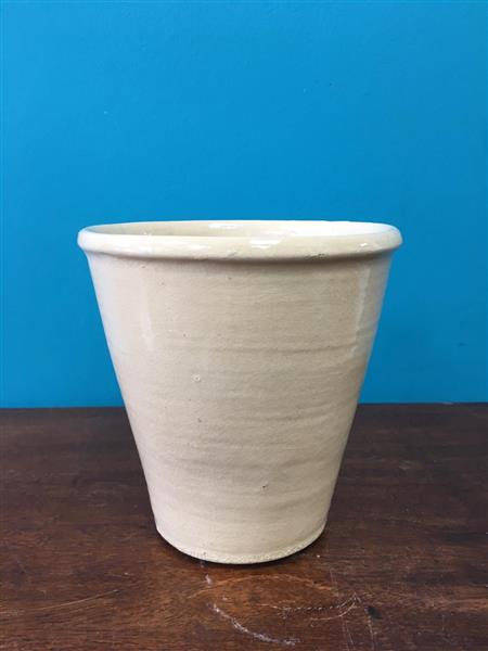 Indoor terracotta pot with a pale yellow glaze. Has a disc in the base which can be knocked out for drainage or left in place for a water tight pot.